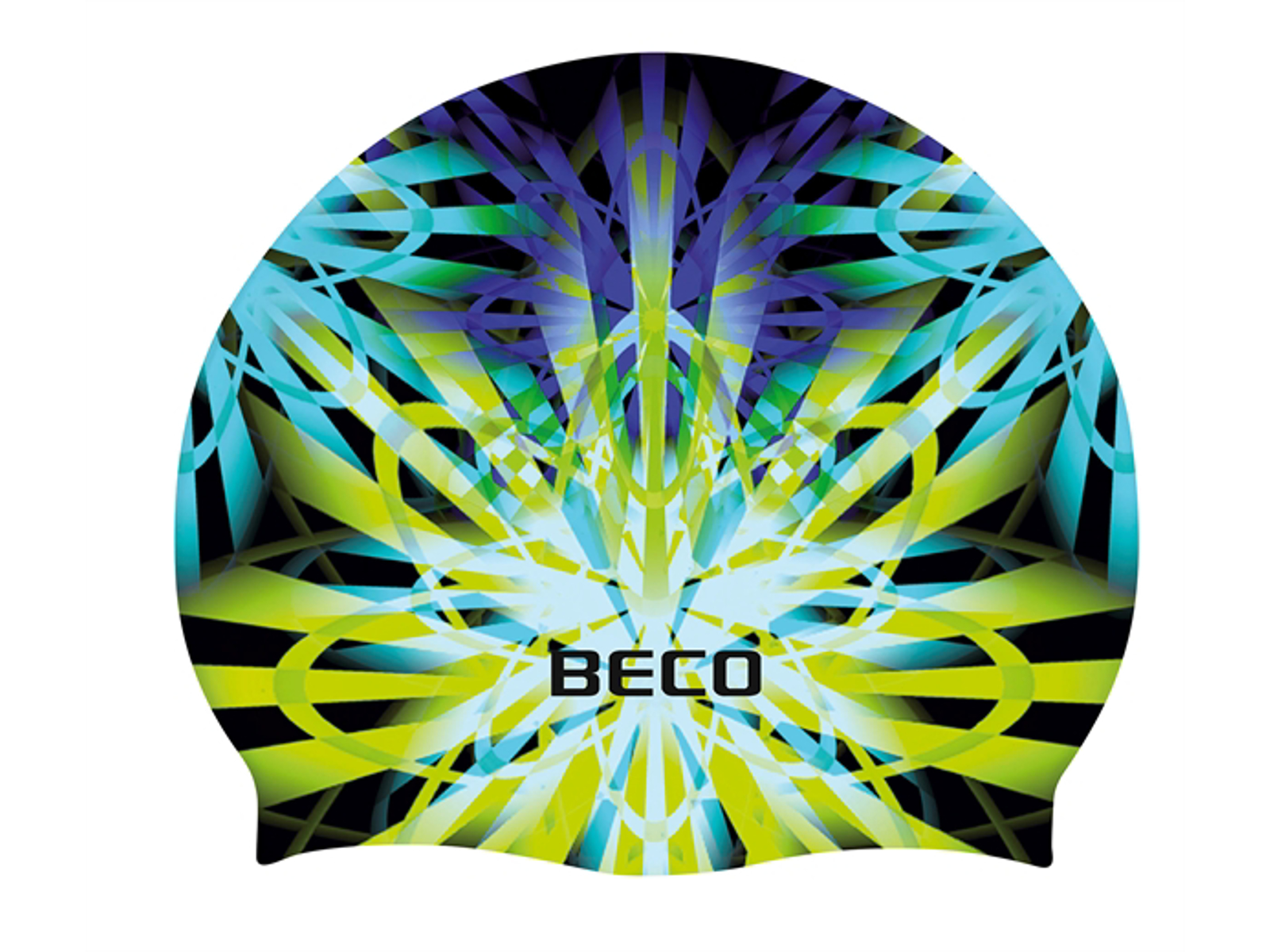 BECO badehætte med flot multifarvet tryk. Badehætten er udført i blød og superelastisk silikone, som føles behagelig mod huden. Til voksne.