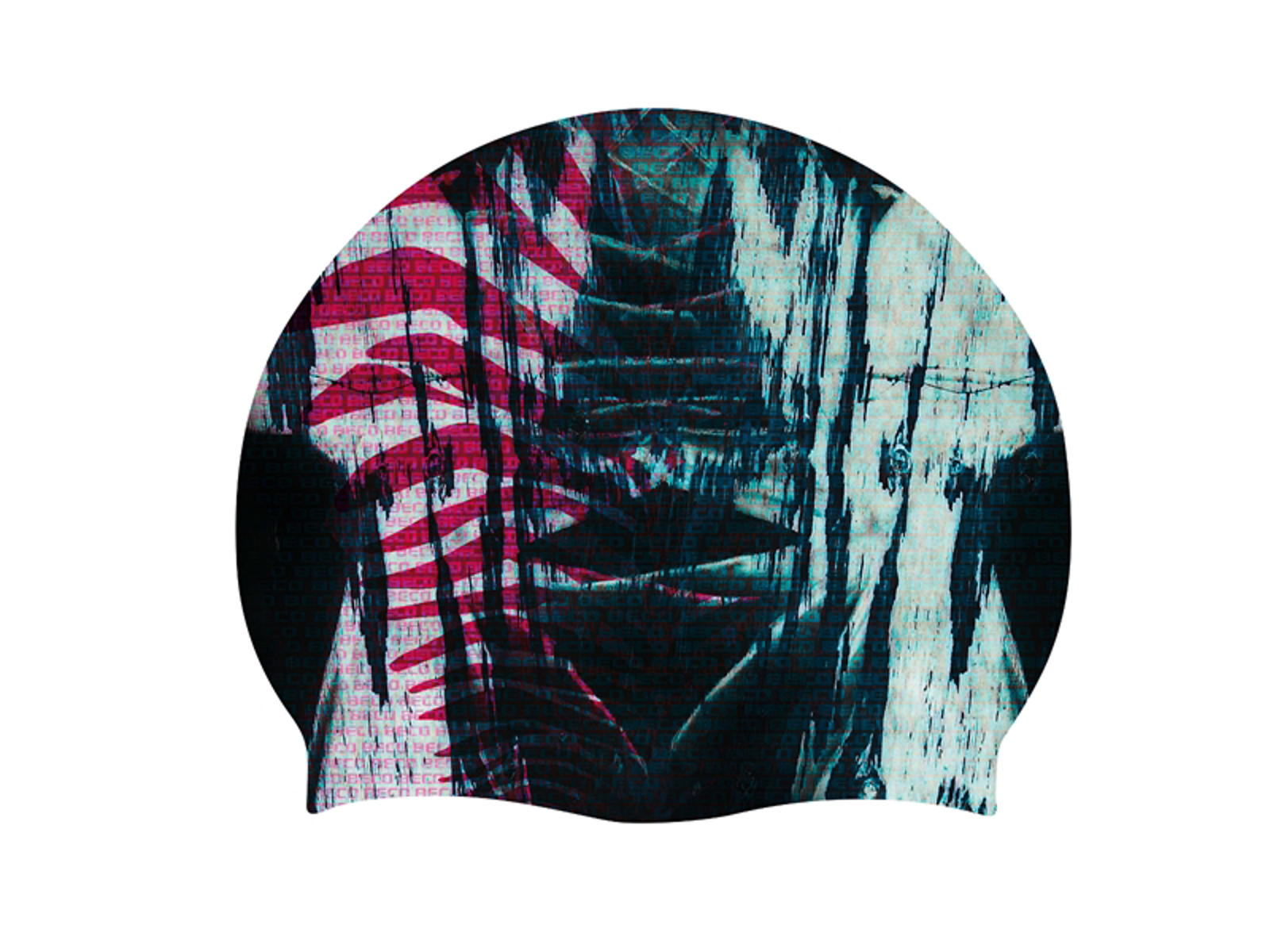 BECO badehætte med flot multifarvet tryk. Badehætten er udført i blød og superelastisk silikone, som føles behagelig mod huden. Til voksne.