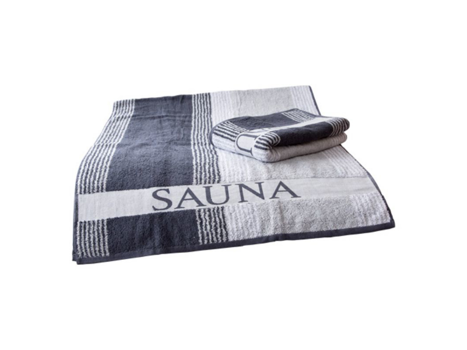 Finnsa ”Saunahåndklæde/lagen størrelse XL 80 x 200 cm” er særligt blødt og lækkert og har en kvalitet med 450 g/m² og høj luv. 100% bomuld. Fås i klassiske grå/hvid farvekombination eller et rigtigt blikfang i saunaen med den rød/grå udgave. Flot skrift med "SAUNA" nederst. Stropper i top og bund. Kan vaskes ved 60 grader og er velegnet til tørretumbler.
